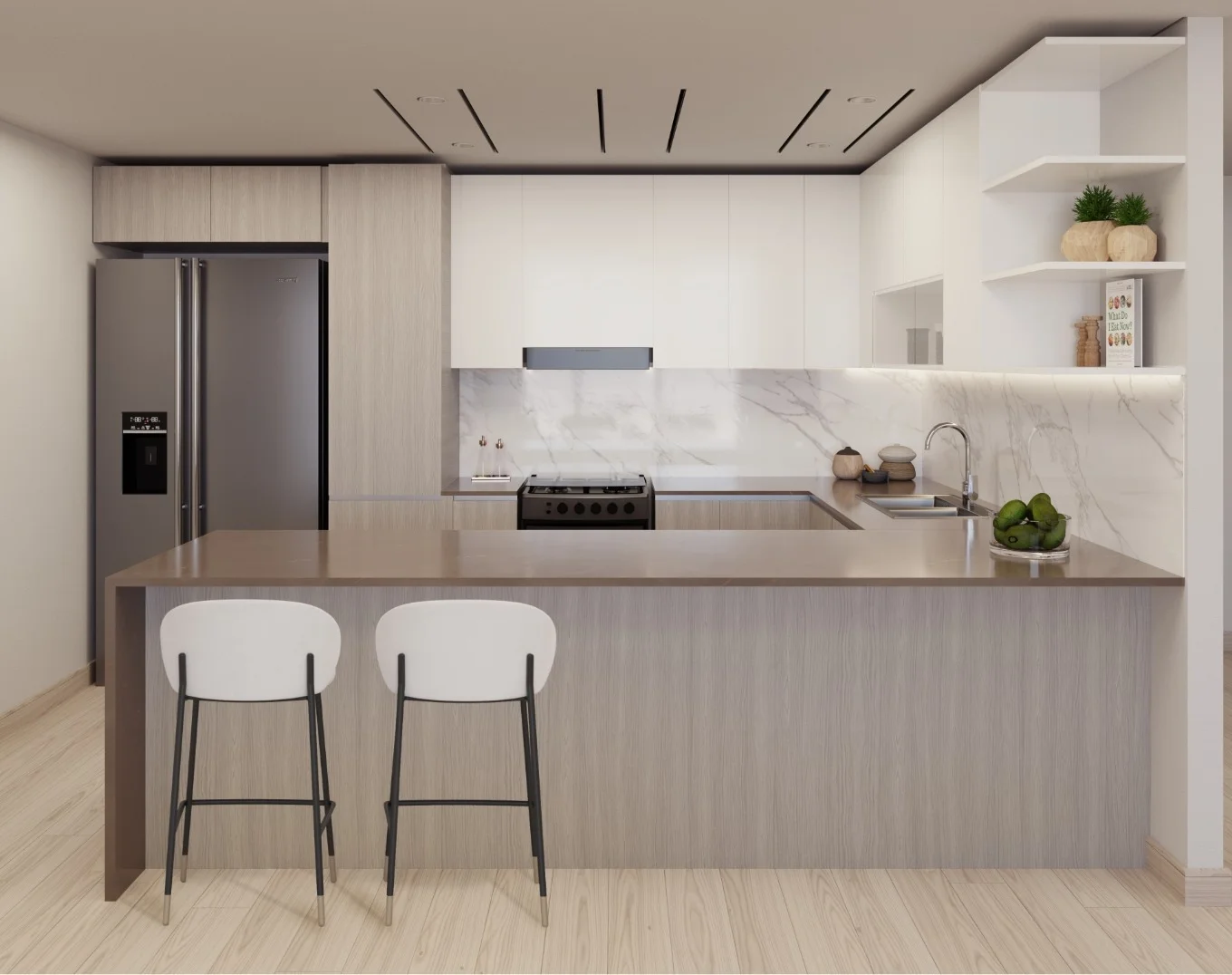 این واحدها با استفاده از بهترین مواد و طراحیهای مدرن تکمیل شدهاند. آشپزخانهها مجهز به کانترهای کوارتز ایتالیایی و لوازم بهداشتی برند کوهلر هستند. همچنین، پنجرههای پانورامیک، چشمانداز زیبایی از شهر را به ساکنان هدیه میدهند.