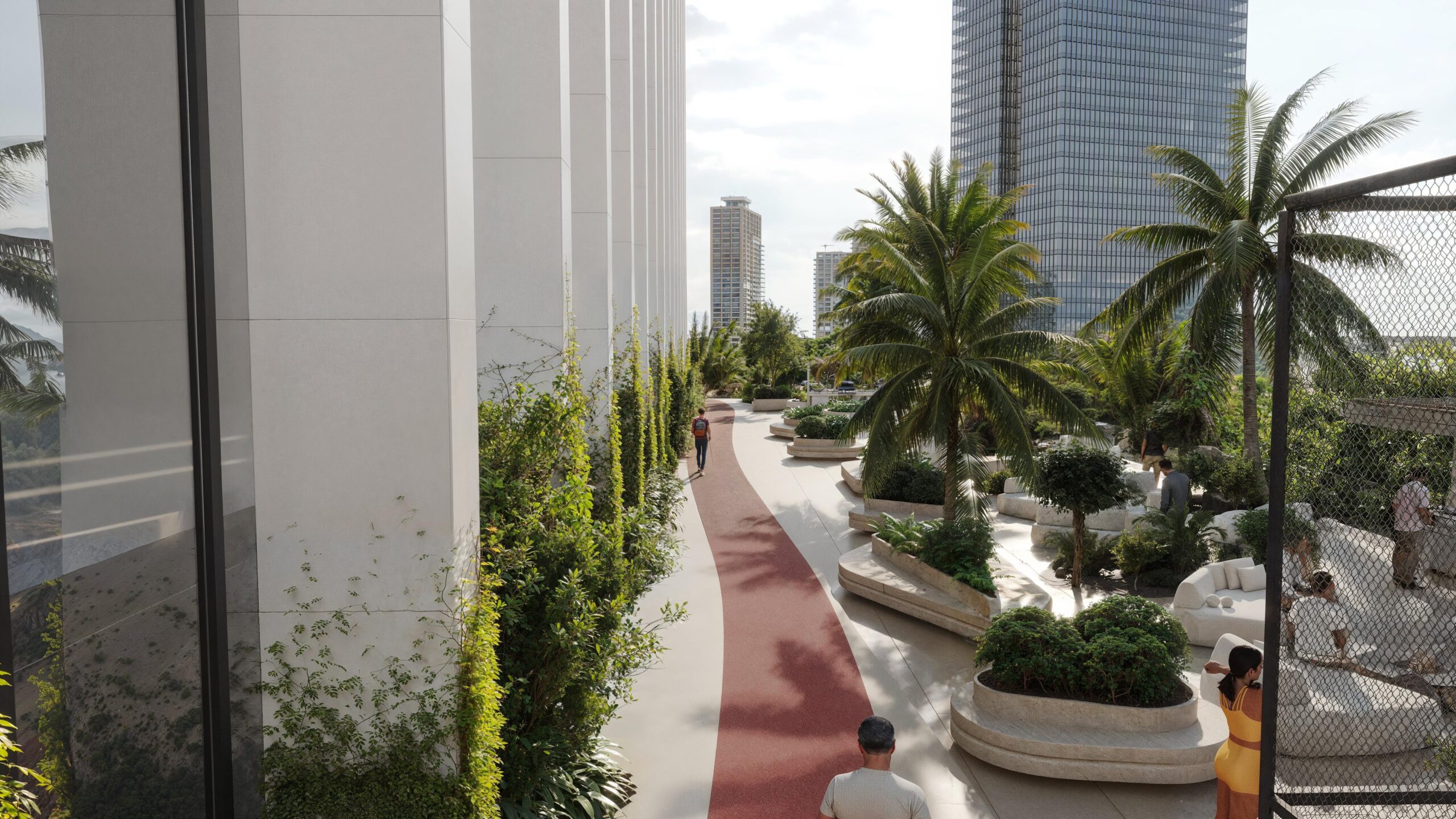 در بلندترین طبقه این برج، یک جنگل بارانی مصنوعی طراحی شده است. این فضای سبز گرمسیری شامل گیاهان متنوع و حیوانات خاص است. همچنین، امکاناتی مانند رولرگلایدر فرصت تجربهای هیجانانگیز برای ساکنان فراهم میکنند. این جنگل بارانی فضایی آرام و دنج برای فرار از شلوغی شهر و تجربه طبیعت ارائه داده است.